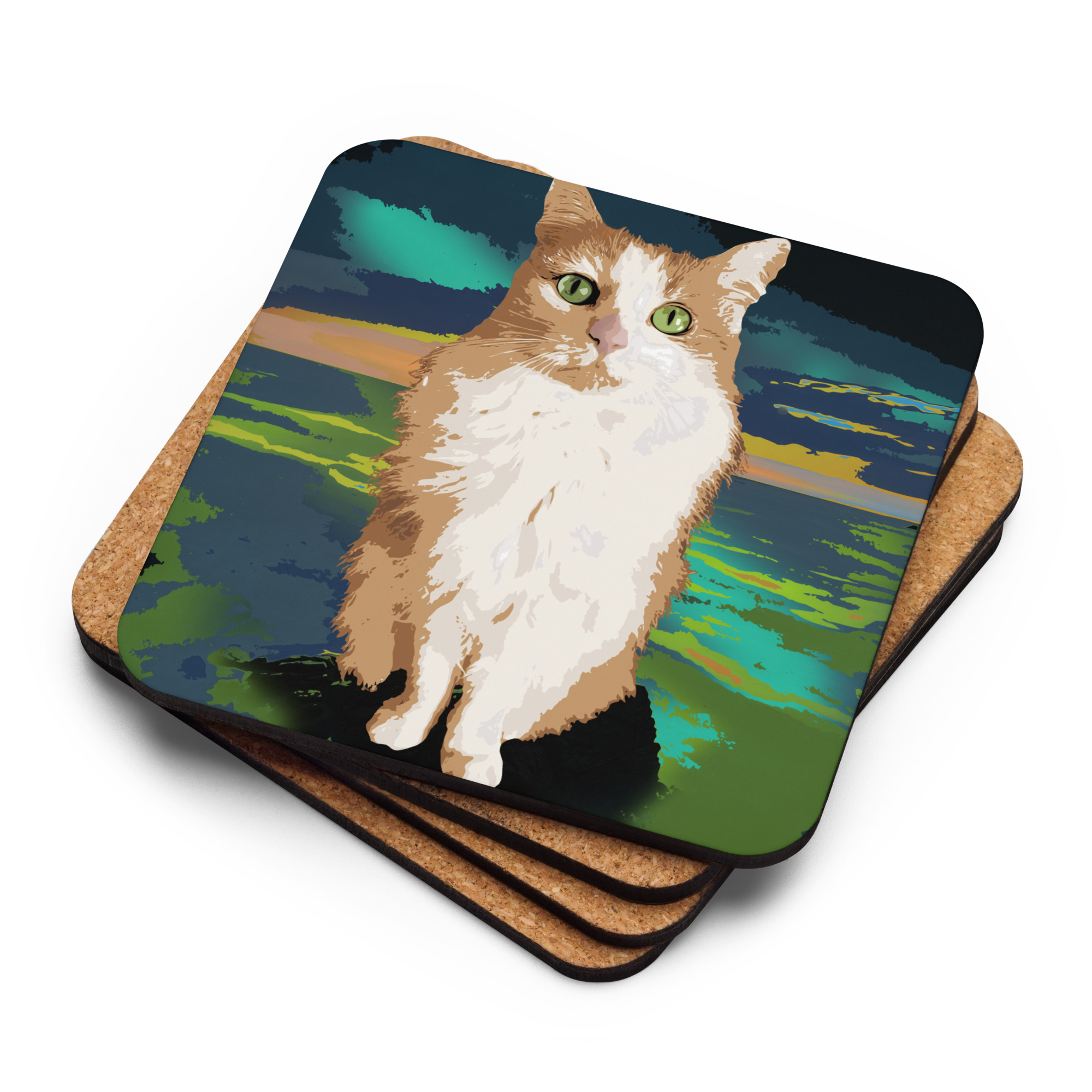 This cat art cork-back coaster is a perfect match for your favorite mug! Create a homey feel while protecting your coffee table or nightstand from mug stains and moisture. The cat art coaster is waterproof and heat-resistant, designed to last a long time. Buy it for yourself or as a lovely gift for your friends and family.